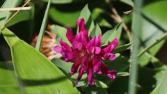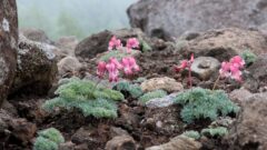 花のつけねが網目模様。生えてるのが陸上。