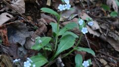 類似する「コミヤマカタバミ」は、標高1000m以上などもっと高山に生え、花弁にピンク色の筋が入る。