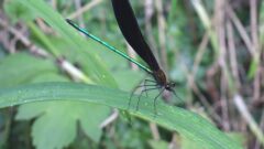翅を前進翼のようにして身構えて止まる姿がかっこいい。