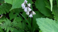 林の中にひっそりとした感じで咲いていますが、よく見るとちょっと人工的な感じのする面白い花。