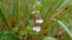 1cmほどの小さな花ですが、透明感のある綺麗な青紫の花は赤茶色の蛇紋岩をバックにとても映える存在です。