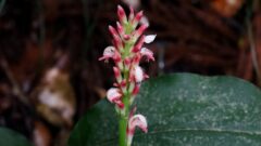 花は筒状で先端が5裂し、楕円形の小さな葉には浅い鋸歯があります。
