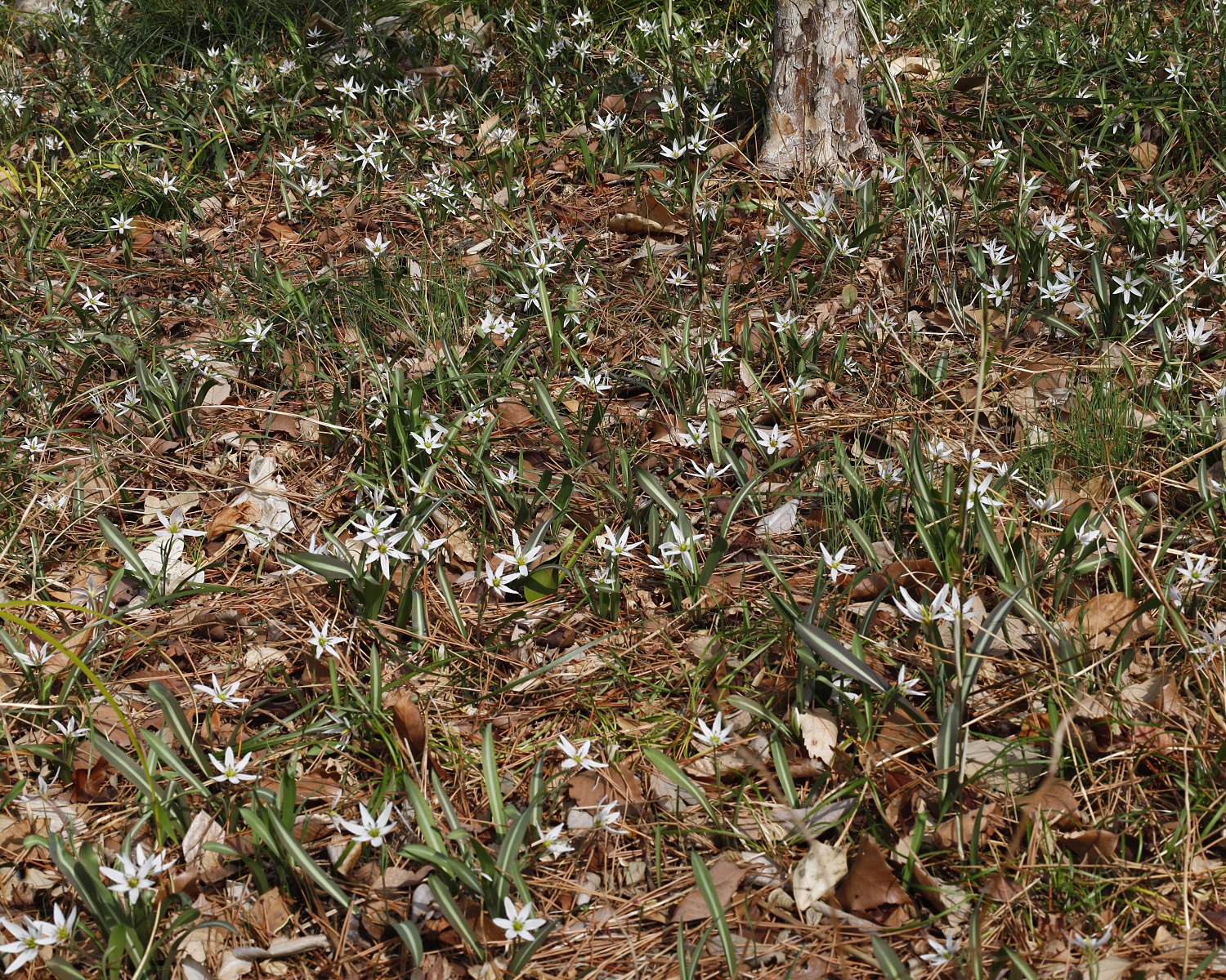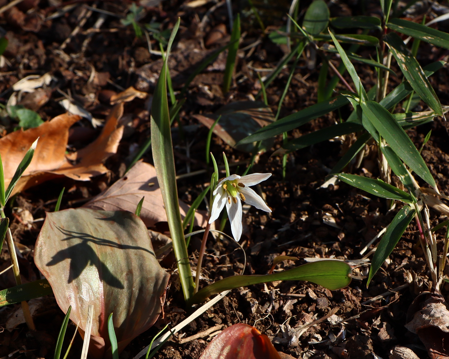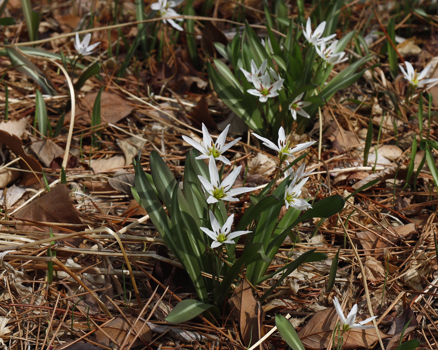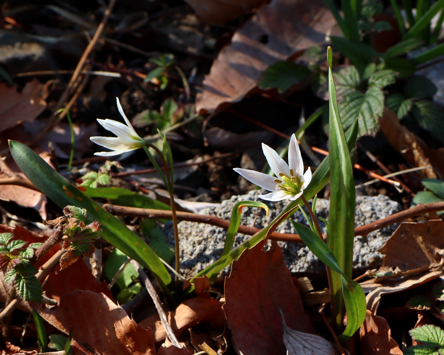 アマナと花はほとんど同じですが、葉がやや広く中心に白っぽいラインが入ります。