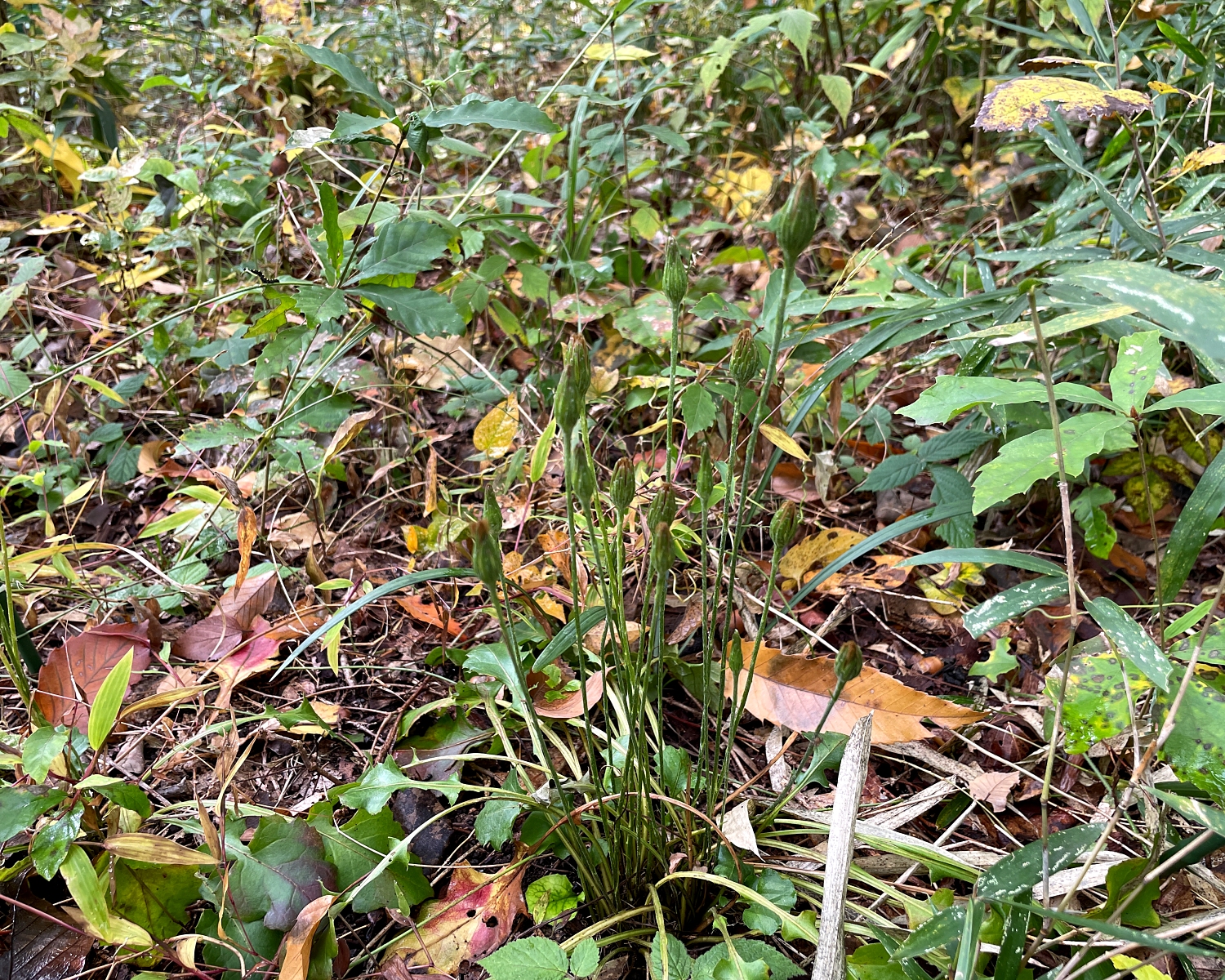 そして秋にはひょろっと長い花茎の先に自家受粉する閉鎖花をつけ、この様子が槍のようなので「千本槍」の名前の由来となっています。