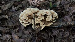 傘の表面に薄茶色の表皮がひび割れて残るのが特徴的です。