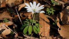 地味なので枯れ葉の中で目立たないのですが、眼が慣れてくと、けっこうあちこちに分散して咲いています。