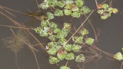 三出複葉の「三つ葉」や、小さな花が数十個集まった球形の花序など「シャジクソウ属」の特徴の典型です。