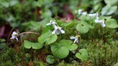 そもそも、地域によってはほとんど白花に近いものはたいへん多いのですが、この株は花内側の斑紋まで紫を帯びず黄緑色でした。
