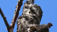 春の雪解け時期にすぐ、葉のない枯れ枝のような枝に小さな松かさのような目立たない花をつけます。