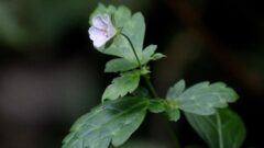 花は淡紅紫色、頂がく片は上部ほど細くなる、花柄に曲毛あり → アズマレイジンソウ