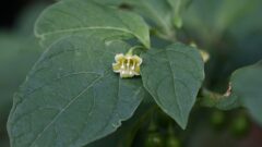 キイジョウロウホトトギスのように下垂し、互生する葉は茎を抱きます。