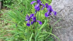 ハナショウブとともに湿生植物で、花の白斑と葉の脈で見分けられます。