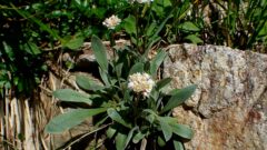 楕円形の葉の表には銀色の星状毛が点々とあり、葉裏には銀色の鱗状毛に赤褐色の鱗状毛が点々と目立ちます。