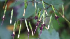 秋には塔状の花序に、細かい5裂の花をたくさん密に咲かせます。