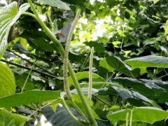 長い花茎をまっすぐ立ち上げ白い花を咲かせます。