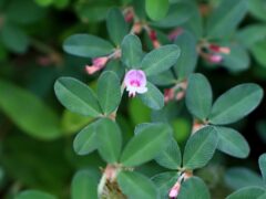 丸い葉は光沢をもち、鈍い鋸歯は片側8個程度(普通のイワカガミは十数個)。