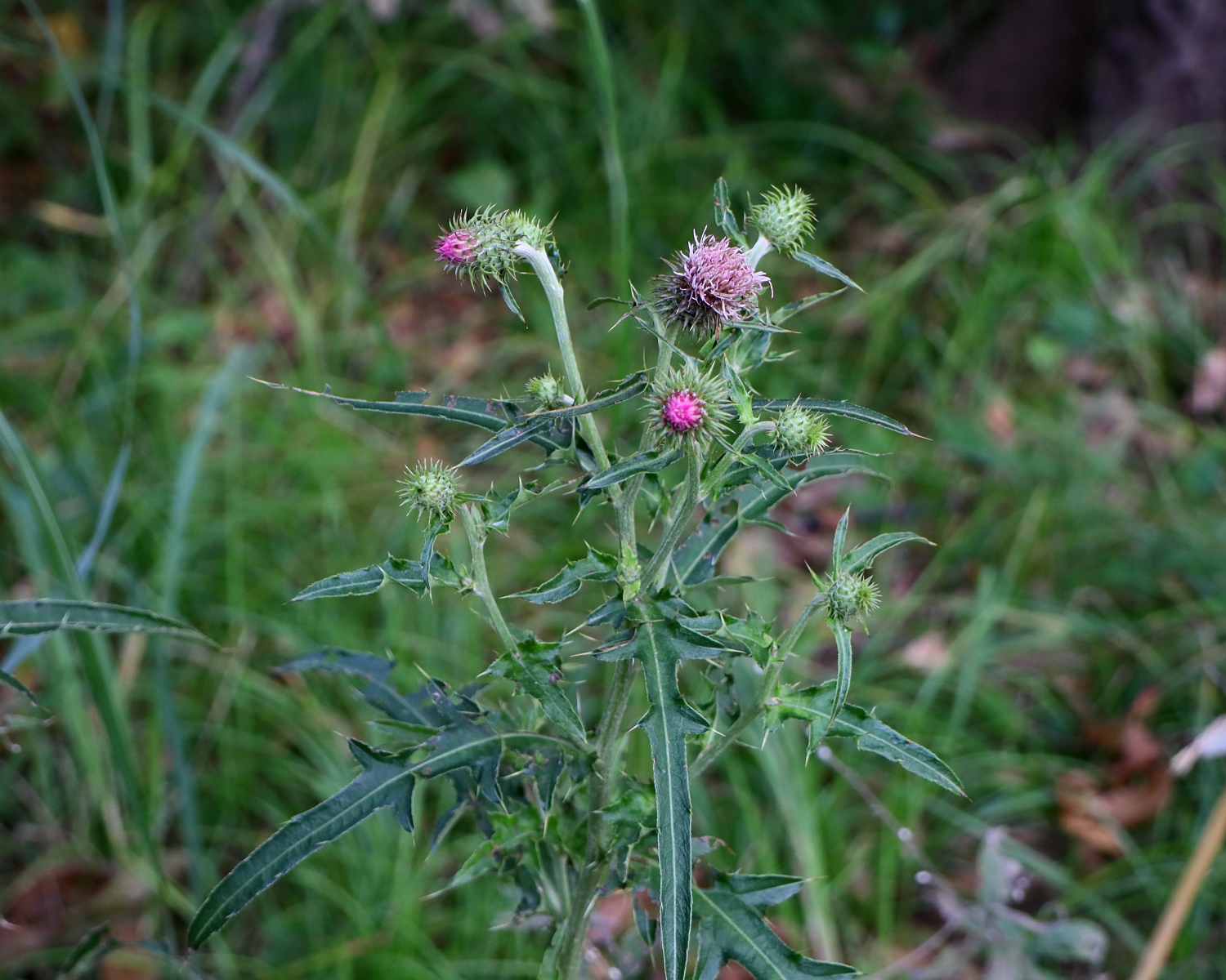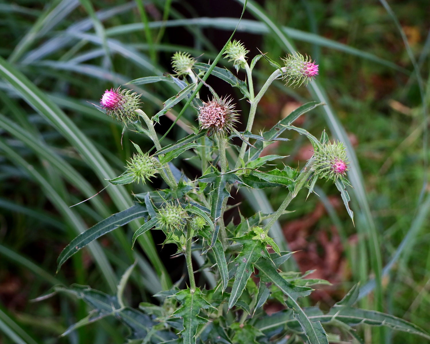 葉や総苞片の棘が太くて長いのが特徴で、棘の鋭い「タイアザミ」よりもさらに鋭い棘であるとされています。