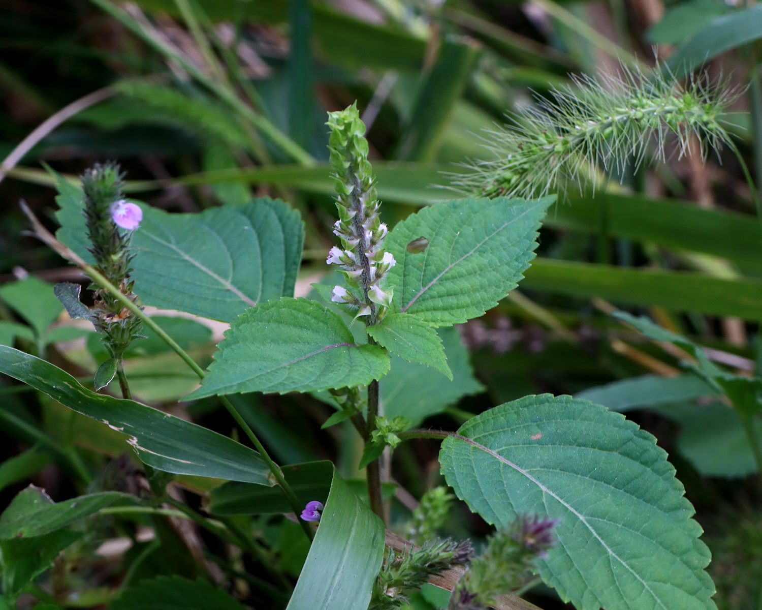 在来種の「レモンエゴマ」とは非常によく似ていて、茎の毛や葉の形、包葉の形などで見分けるとされていますが、雑種など中間的なものも多く、区別は極めて困難です。