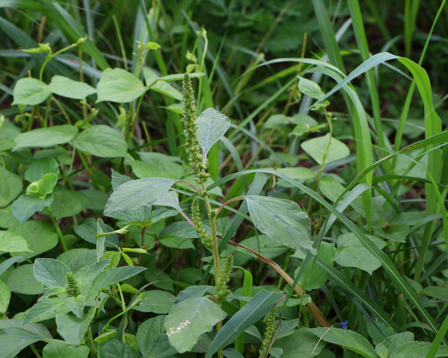 葉の裏面には灰白色の毛が密生し、これが表に回って見えるためと思われます。