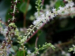 名前の「九枚笹」は、枝先に出る葉が9枚セットでつくためですが、実際には9枚のものは少なく5枚程度のものが多いようです。