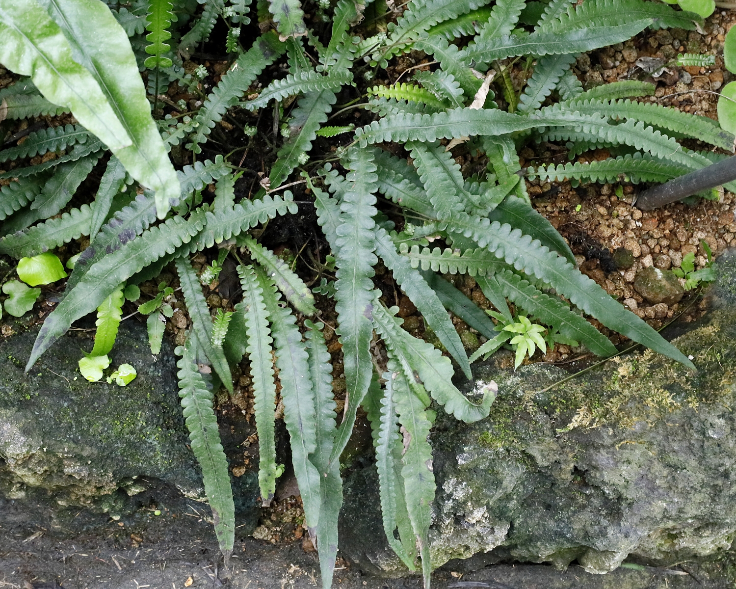 葉身が単葉の「ヘラシダ」と、普通の羽状の「ナチシケシダ」の自然雑種とされる常緑性シダ。