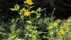 この写真のものは、葉の葉脈に斑が入っている感じが「ジンヨウ」かとも見えますが、「ジンヨウ」は普通花序が3-4個までで全体に小型で、花の萼片が短く尖らないということなので、これは「ジンヨウ」ではないようです。