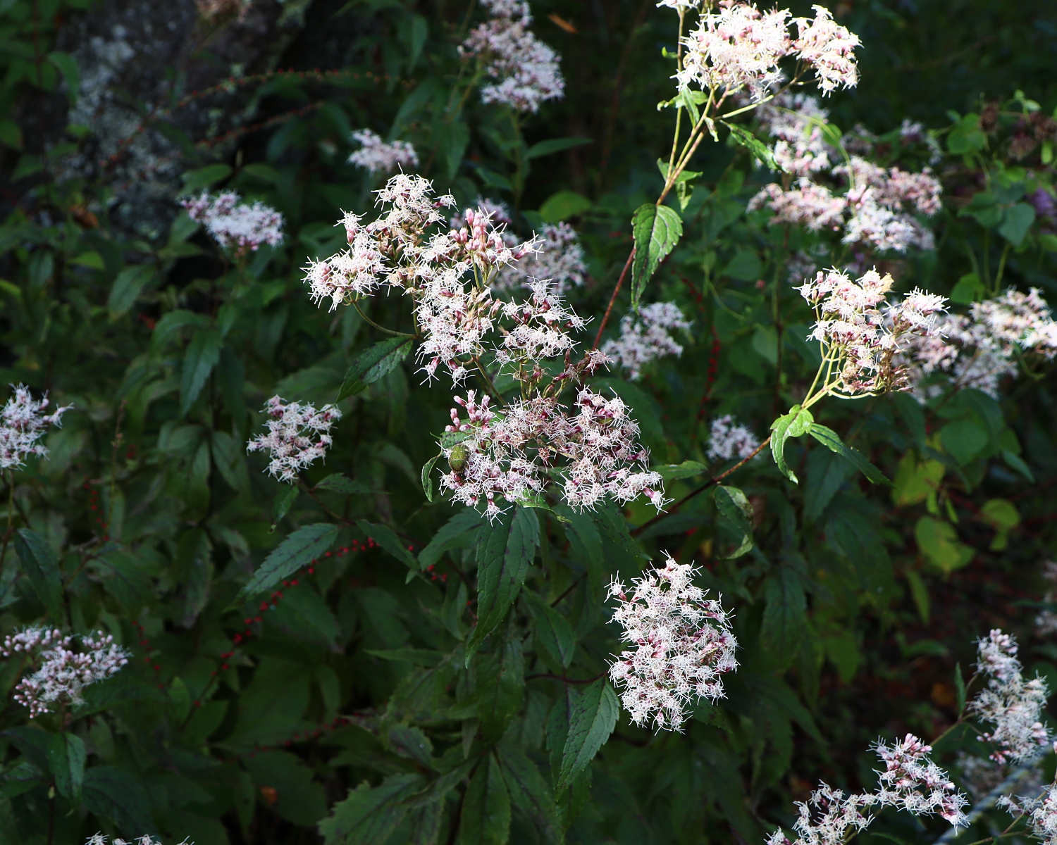 同属の「ヨツバヒヨドリ」などとよく似ていて、花だけではほぼ区別がつきませんが、下の方の茎葉が3裂になっているところが違います。