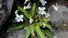 小さな白い花に紫の筋が入り、なかなか綺麗だが小柄なのであまり目立たない場合も多いです。