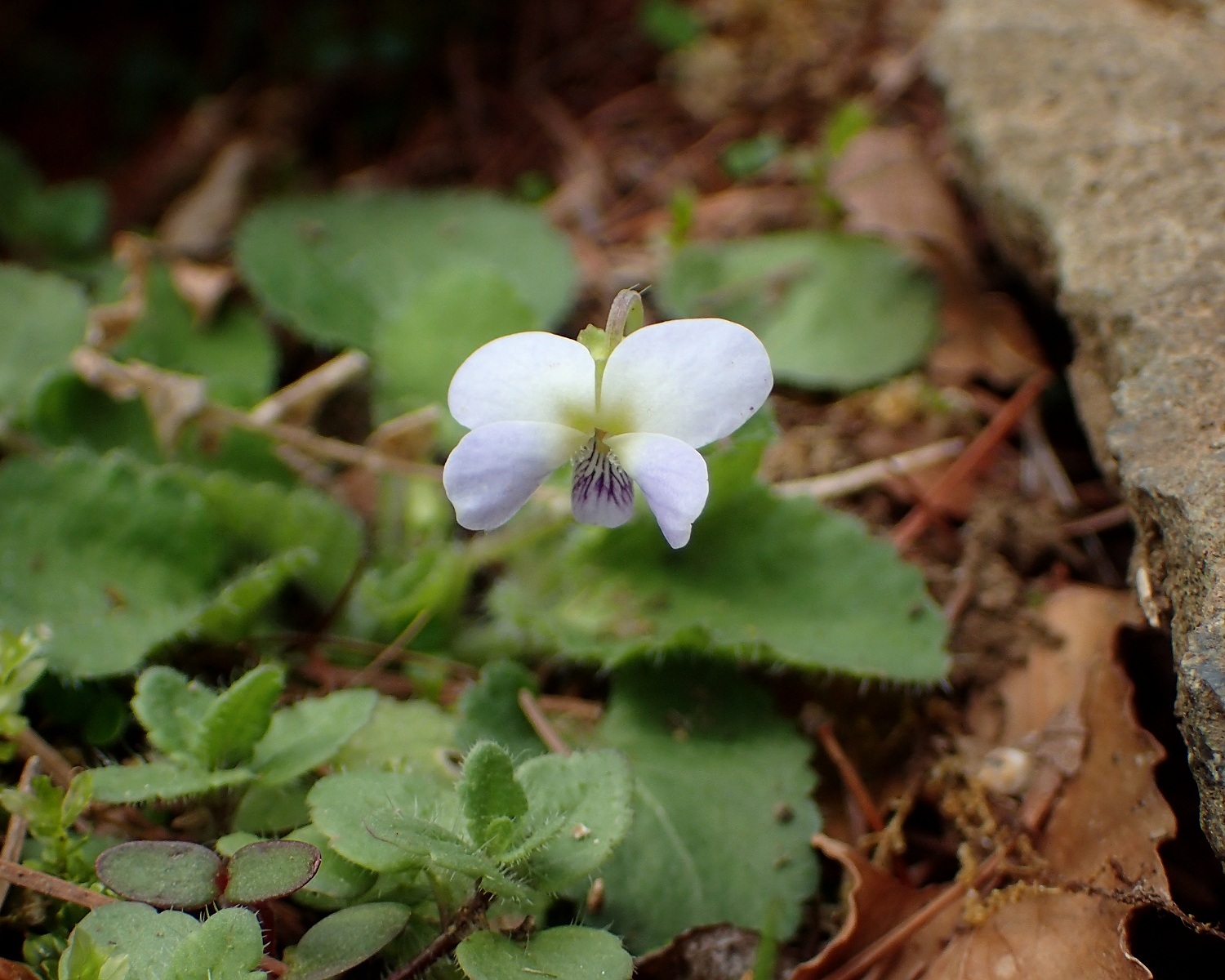 葉がまた独特で、どのスミレにも似ていないスプーン状で、しかもロゼット状に生えています。