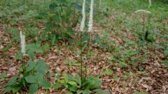 いかにもタツナミソウの仲間ですが、よくみると個々の花が垂直に折れ曲がらずに素直に斜めについています。
