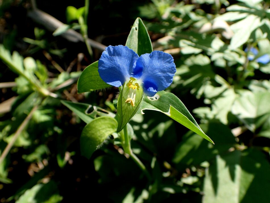 ケツユクサ (ツユクサ科ツユクサ属)【毛露草】(Commelina communis f. ciliata)普通の「ツユクサ」とほぼ同所的に生育する中に、包葉に毛があるものがあり「ケツユクサ」として別品種となっています。また、比較するとケツ...
