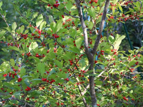 ミヤマウメモドキ (モチノキ科モチノキ属)【深山梅擬】(Ilex nipponica) 別名:ホソバウメモドキ「ウメモドキ」によく似ますが。より山地性で葉が細めになります。高さ2-3mほどの低木で、本州東北地方~中国地方の日本海側に分布し、...