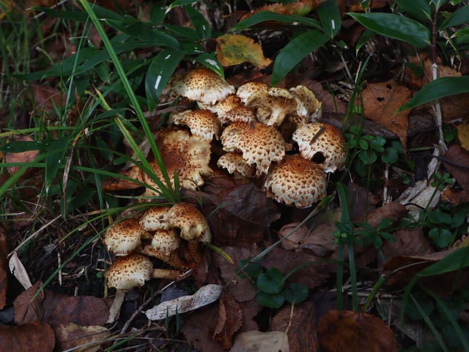 10月 ツチスギタケモドキ ツチスギタケモドキ (担子菌類モエギタケ科スギタケ属)【土杉茸擬】(Pholiota-sp)スギタケ属のスギタケの仲間は何種類かあって、未だ分類がはっきりしていないようです。「スギタケ」や「スギタケモドキ」は、倒木や枯れ木に生えるものですが... 2025.10.18 10月秋菌類(キノコ)