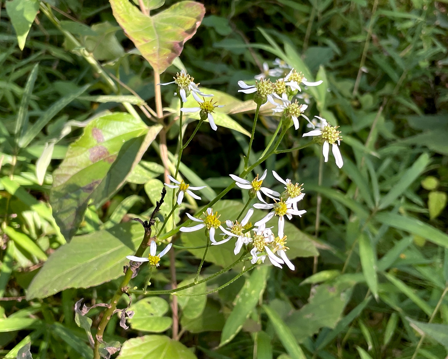 シラヤマギクが咲いています 雑木林だより 2025.10.19 シラヤマギク 2025/10/18 林内ではあちこちにシラヤマギクが咲いています。 野菊の仲間ですが、とても背丈が高くなり不安定で倒れてしまったりします。 花弁が若干まばらで不揃いな傾向となります。 - シラヤマギクのページ -