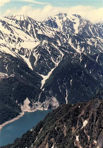 足のすぐ下には黒部湖が。