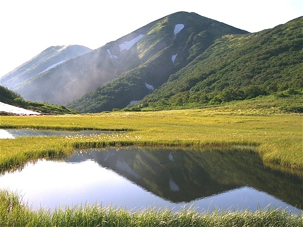 妙高連峰・火打山の女性的山容は、天狗の庭と呼ばれる高層湿原と併せて絶景をつくりだしている