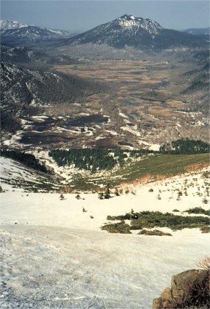 五月の名残の雪を求めて至仏山から尾瀬ガ原に向けてスキー滑降