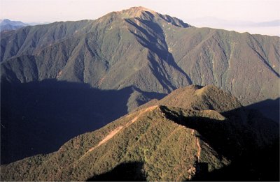 甲斐駒ケ岳から望む、土台の大きな仙丈岳