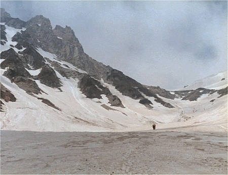 夏は行列の大雪渓も、梅雨の前の季節には雪が多く人は少ない。
