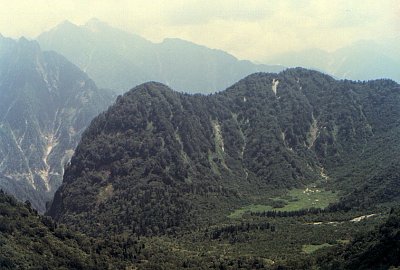 黒部ダムから蒸し暑い谷沿いの道を大汗をかいてたどり着いたハシゴ谷乗越。